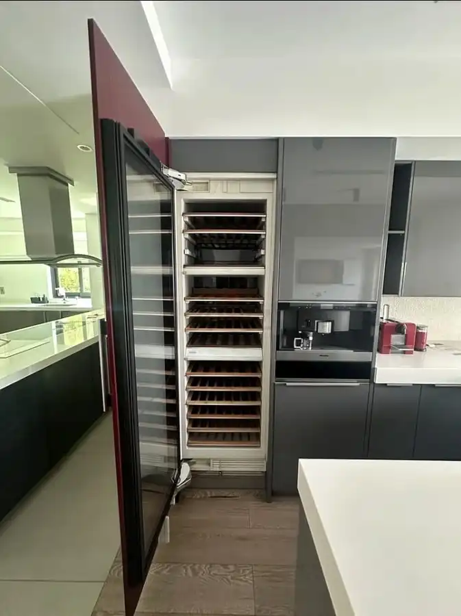 With multiple wooden shelves and a spacious interior, this cooler allows you to organize and store a wide variety of bottles. The precise temperature control system ensures that red, white, and sparkling wines are preserved at their best, while the built-in design integrates seamlessly into modern kitchens for a sleek and sophisticated look.