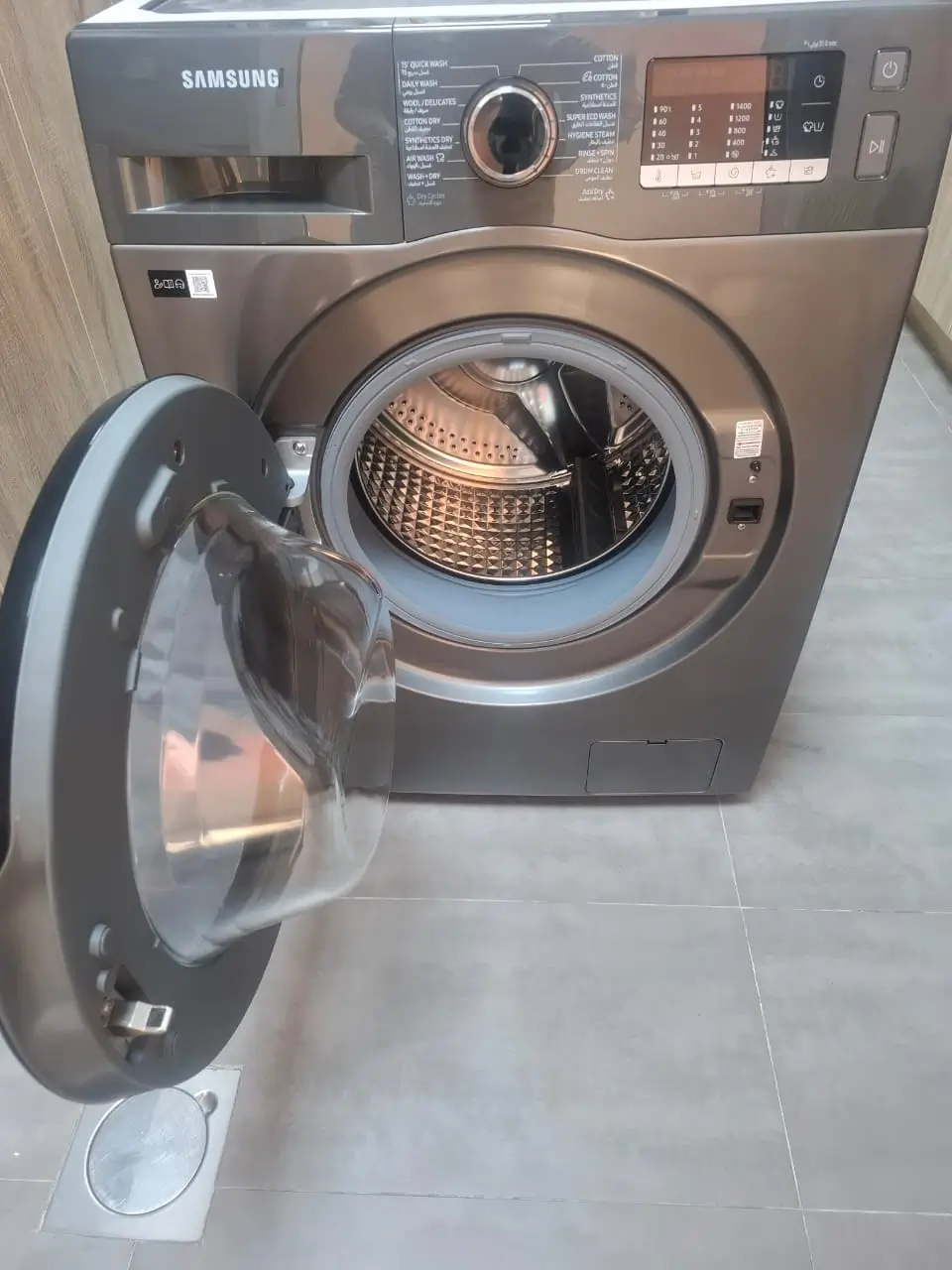 With an 8kg washing capacity and 6kg drying capacity, this Samsung combo machine is perfect for medium-sized households. Its all-in-one functionality eliminates the need for separate appliances — saving both space and electricity.